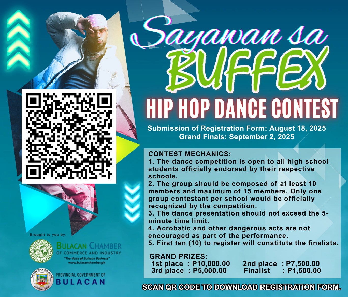 High School student ka ba? Magaling sumayaw? Bumuo na ng grupo at sumali sa Sayawan sa BUFFEX. Fill out lang ng registration form at magpa-endorse sa inyong paaralan. Baka kayo na ang aming susunod na champion sa sayawan sa BUFFEX.